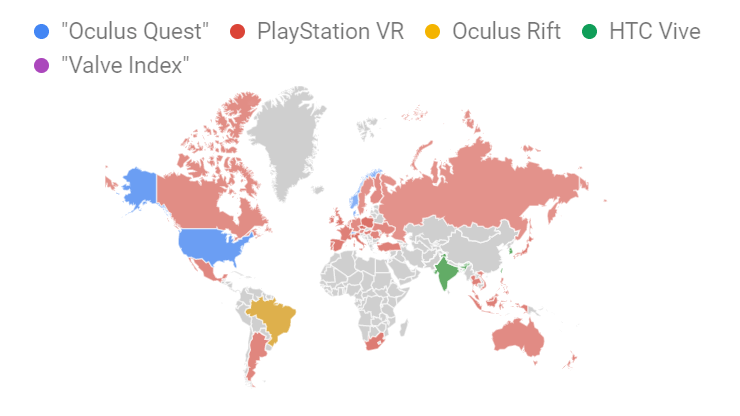 Search volume is an interesting metric, but there’s too many variables at play here to determine which headset has actually sold best over the holiday period. For one, the data only includes searches through Google (though this covers 93% of all searches, according to StatCounter), and search volume is of course quite susceptible to marketing. So while we can see which headsets were the most popular in terms of searching, we can’t be sure how much of the volume is organic versus influenced by the amount of marketing money spent by Oculus, Sony, or others. We also don’t have a good way of knowing the rate at which searches actually convert to sales.