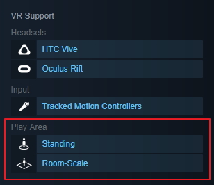 You can of course also find games supporting the Oculus Rift on Steam, and—because Steam is the home of the HTC Vive which has room-scale tracking by default—you may find some games that take better advantage of your new room-scale tracking space. When you find a VR game on Steam, look on the right side of the Store page for the ‘VR Support’ section which specifies which headsets and tracking playspaces are supported by the game.