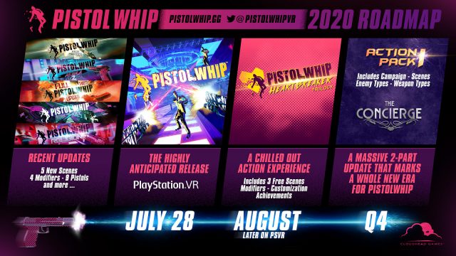 Update (July 17th, 2020): A prior version of this article stated the Pistol Whip PSVR release date as July 27th. This has been corrected to July 28th.