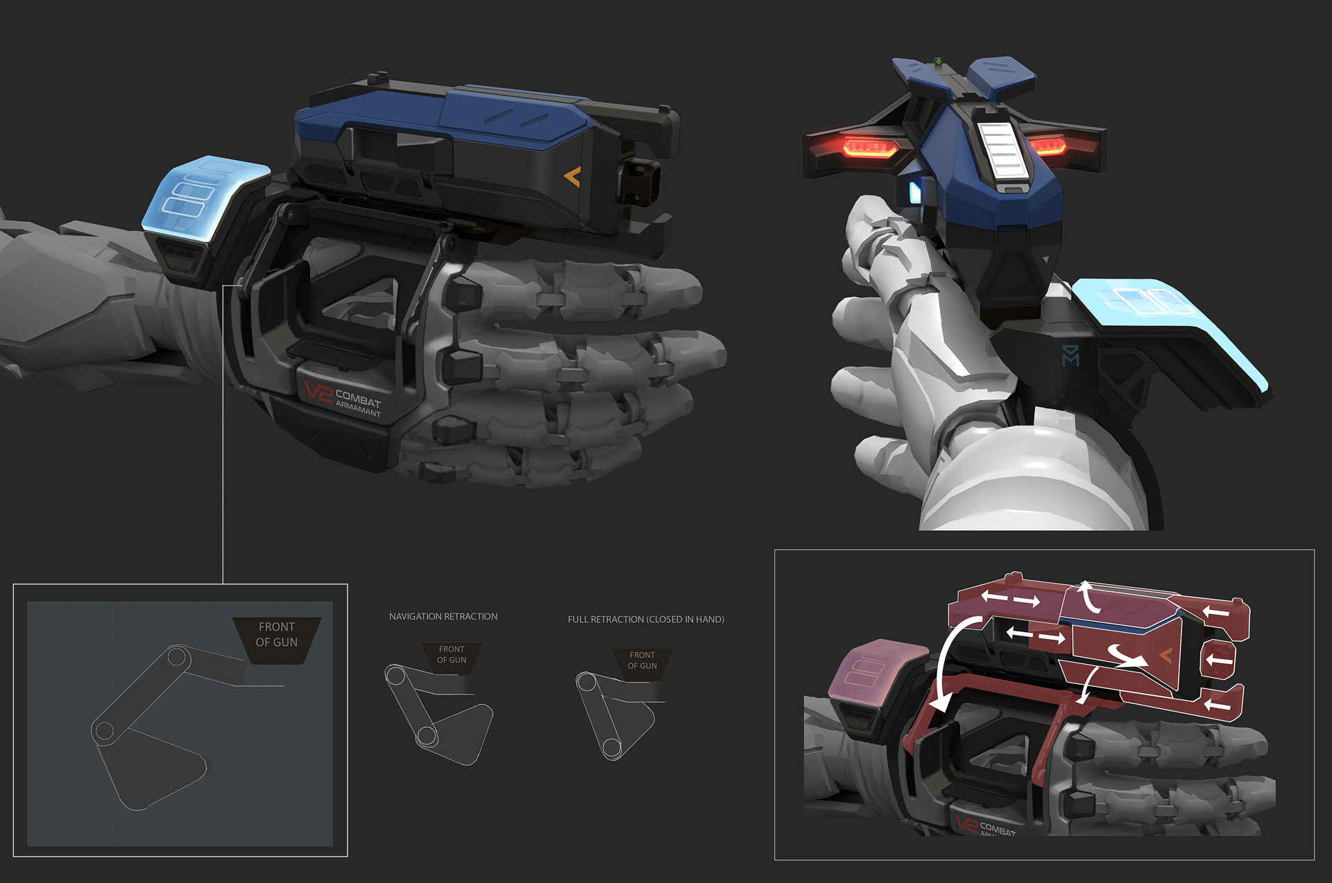 “One of the very first [approaches we explored] was using weapons in your hand that you can actually equip—that means that you would hold weapons, different kinds of weapons, and you could equip them them and shoot—but then we quickly realized that it went against the idea of why our movement mechanic kind of was something that people adapted to and loved, so we decided the guns need to be integrated, they needed to actually be part of your hands,” Weerasuriya said.