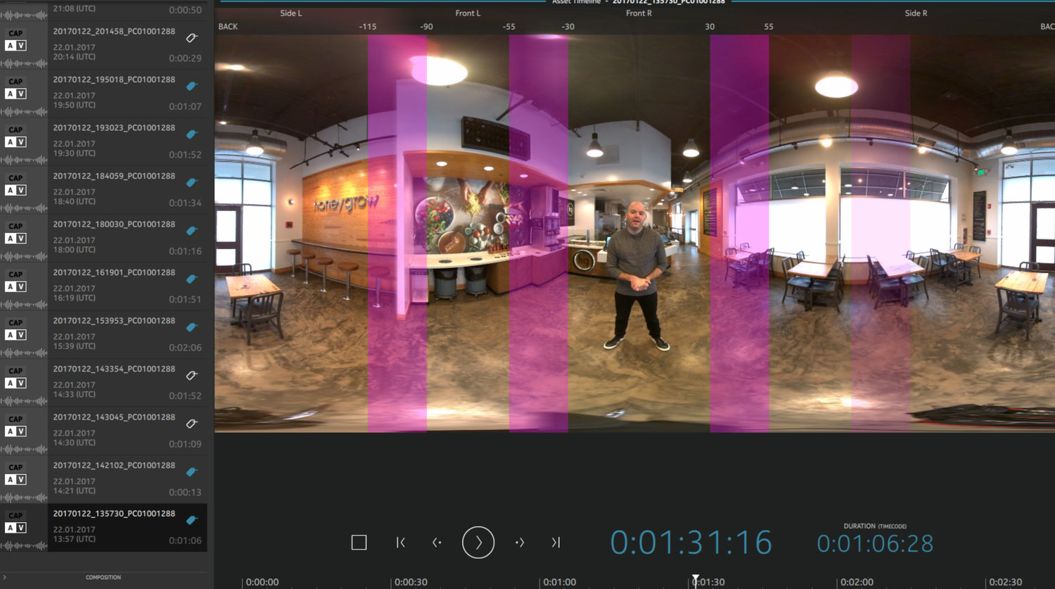 The Ozo system also allowed us to preview and set our stitches on set. By seeing where the seams are between the lenses, we could frame our shots around potential stitching issues. After each take we could also review playback of the scenes in the headset, letting us know we got the shot and could move on. All of this turned the unfamiliarity of VR live action production into something more similar to a traditional live action production.