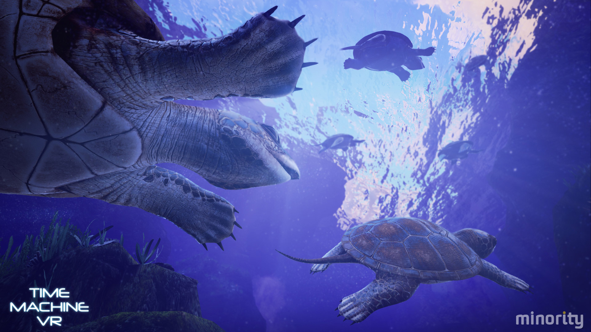 Time Machine VR puts players inside a time traveling pod with different research tools in order help them learn about the underwater creatures of the past. Your research guide, Elizabeth, informs you of the progress being made on the virus in videos that seem like they are straight out of Red Alert 2 (2000) while you travel from the Mundo Museo Research facility in the present back in time to epochs of the past.