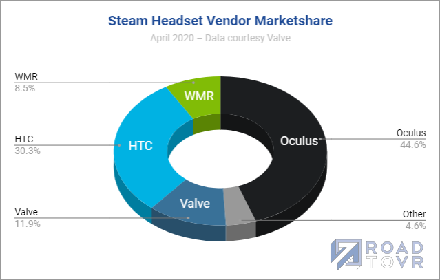 Howver, Oculus and HTC still dominate the share of headsets on Steam, with Valve and WMR further away in 3rd and 4th place.