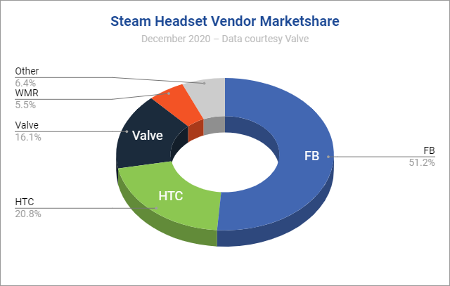 Windows Mixed Reality, long past its peak share of 11% in mid-2019, now holds just just 5.5% of headsets on the platform. With the launch of HP Reverb G2 at the very end of 2020 however, we could see WMR’s share start to tick back upward.