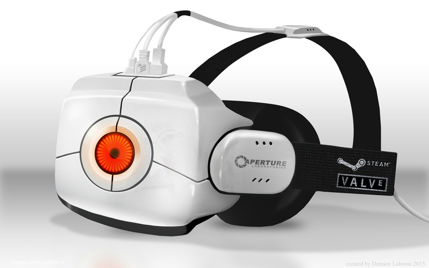 Just kidding. That’s actually an awesome themed render that artist Damien Labonte, whipped up, along with this humorous mockup of a 3DHead-powered Valve headset. Just so we’re clear, the silhouette is real, but the headset probably won’t take after the robots from Portal 2. We’ll learn more next week when the company reveals the unit at GDC 2015.