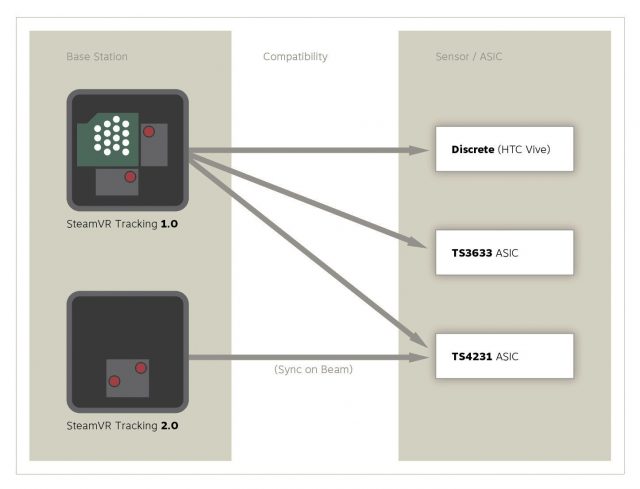 The 2.0 base stations won’t be compatible with existing HTC Vives since they use a different method for sync timing, but newer headsets and tracked devices in the works will benefit from the 2.0 base stations which will be “smaller, quieter, lower power, more reliable, and less expensive than their 1.0 counterparts,” and offer better performance, according to Valve. An update from June talks more about details of forward/backward compatibility roadmap between base stations and sensors.