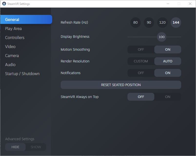 SteamVR Settings