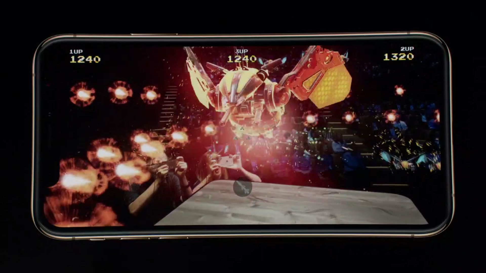 Busting out of a classic arcade cabinet placed on a table, players duke it out for max points by shooting down laser drones and even going against a level boss. While it seems a bit busy visually, it’s one of the highest quality multiplayer AR experiences we’ve seen to date—no small part played by Apple’s new A12 Bionic chipset.