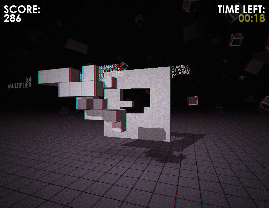 SuperHyperCube’s development has spanned many years since being first deployed as an experimental game built for anaglyph 3D (the old red and blue glasses) and used a Wiimote for some hacked together headtracking (in the reverse style of Johnny Chung Lee’s) sometime around 2008.
