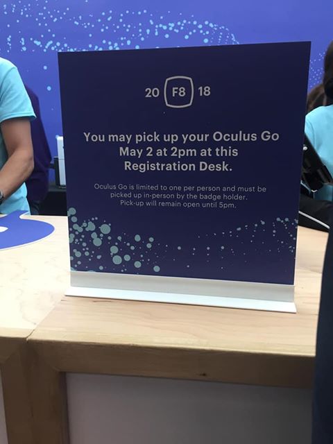 The image below was posted yesterday by Marco Antonio Liu, co-founder at HappinssVR, a studio working in mobile VR. According to the image, attendees are taking home an Oculus Go (one per person) on May 2nd.