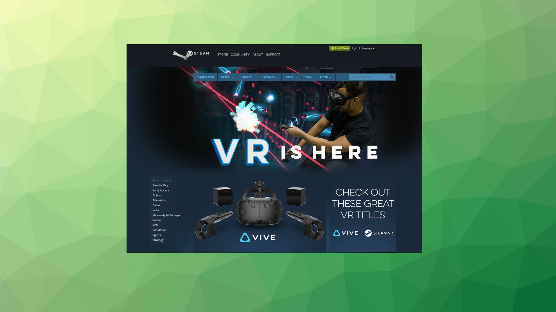 On Steam’s front page, Valve made a huge VR splash today, unlike any sort of VR promotion we’ve seen from the company before. VR has taken over the Steam front page, with the Featured box filled with nothing but VR games. Tens of millions of Steam users see this page every time they launch steam.