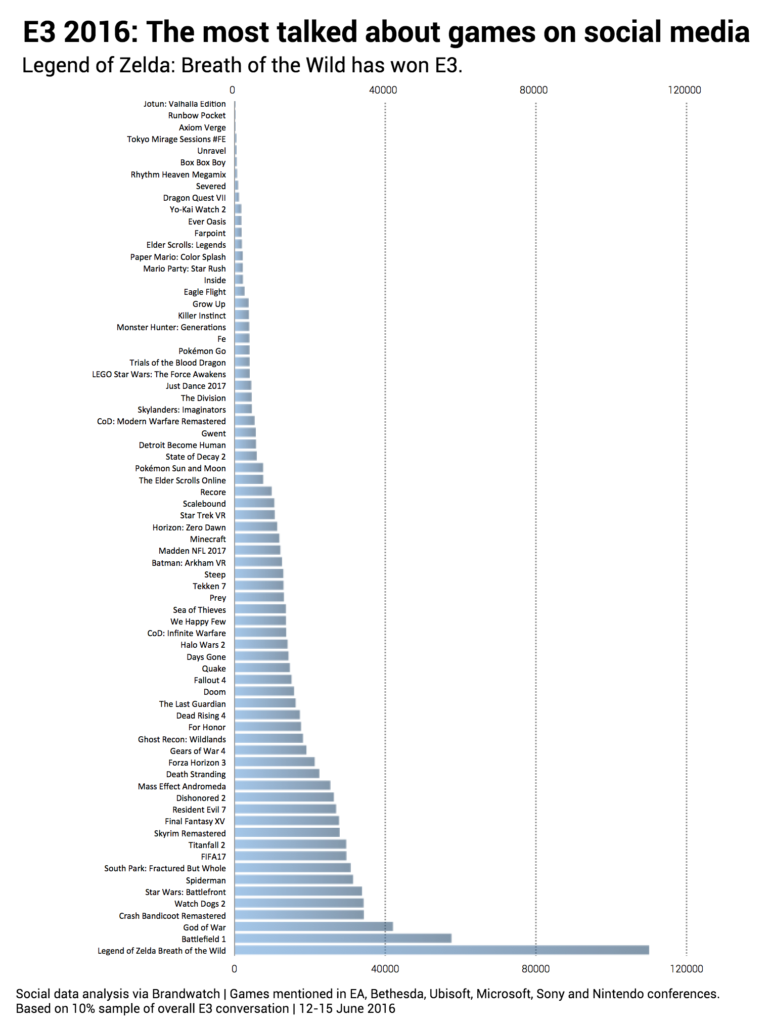 We can’t really count Fallout 4 in place number 24 on the list – the most talked about game coming soon to VR headsets – because the data isn’t granular enough to see whether it was the newly announced DLC packs or the new VR version slated to arrive in 2017 that drove netizens to social media.