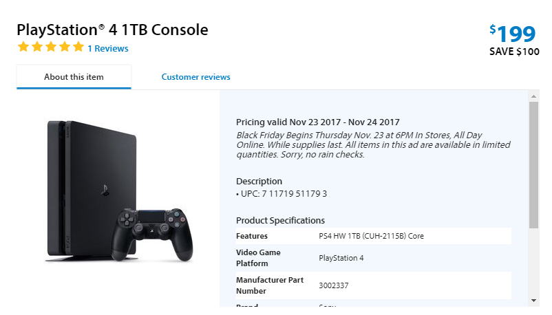 Retailers like Walmart and Target are making it awfully hard not to want a PS4, and since the console drives the PlayStation VR headset, we can’t help but push the deal in front of your nose too. At $200, it’s the same as Target’s deal, but again, if you’re shopping all in one place or have a gift card to use, you’ll appreciate you can get the deal here too. With only $500, you could have a VR machine in your house, something that at the time of this writing costs at very least $690 ($390 PSVR GTS bundle, $300 PS4 1 TB console).