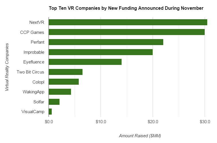 Here is a chart of the top ten companies who raised in November (data courtesy Greenlight VR):