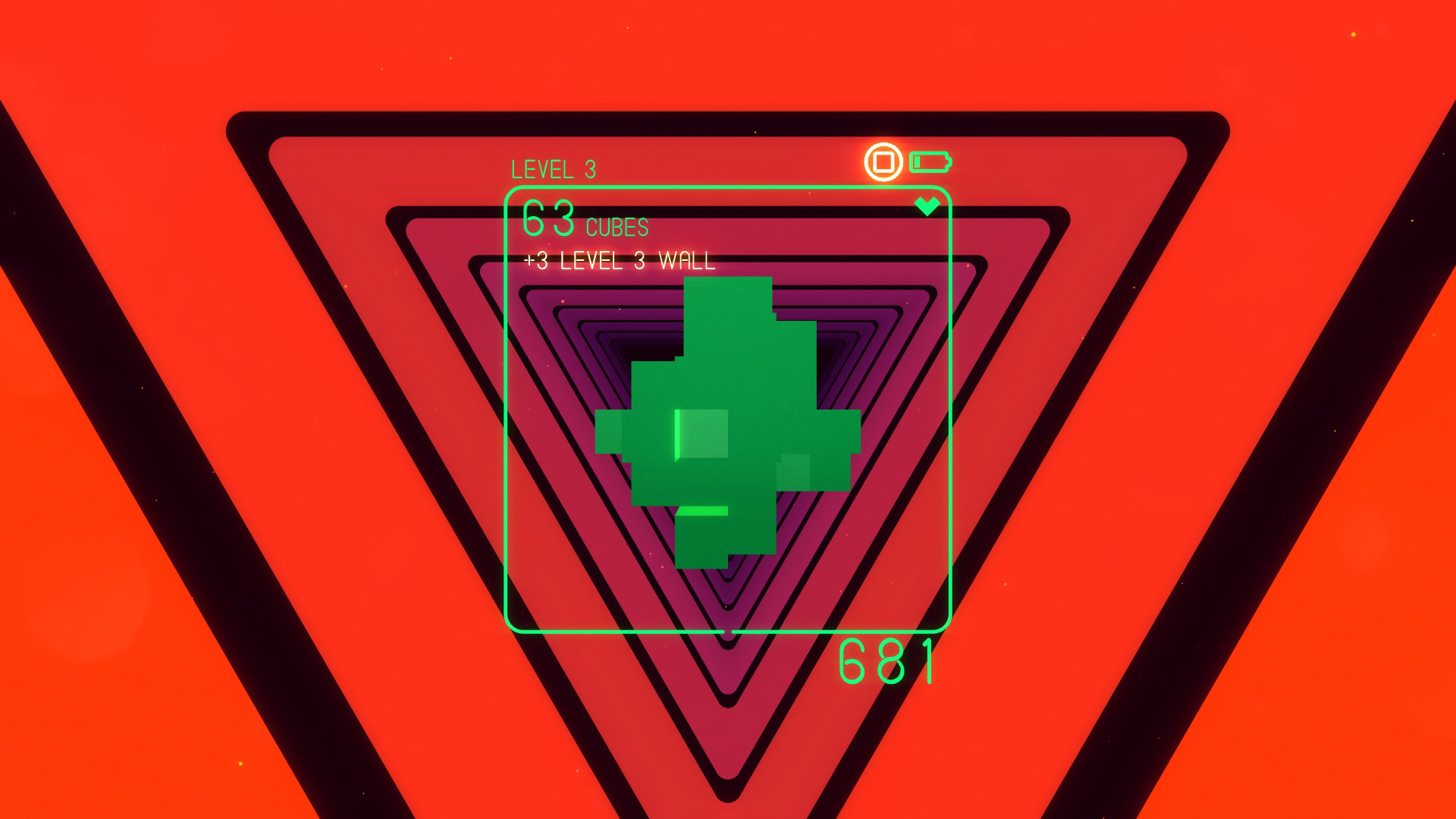 You start the game with a simple cube, but with the successful passing of every virtual barrier, your cube grows in complexity, in three dimensions, posing ever more difficult challenges for the player as they continue their trance-like journey. As you dodge and weave to get the best view of the obstacles ahead, using a controller to rotate your shape to fit, dynamic music accompanies you – its tempo matching events onscreen.