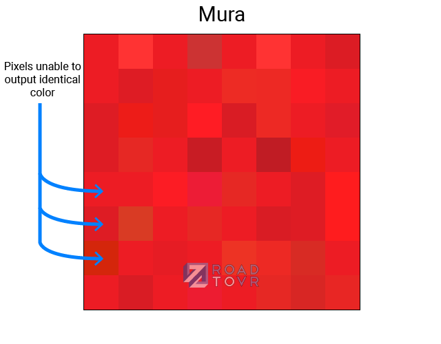 Some display technologies have a natural advantage when it comes to color consistency between pixels. LCD for instance tends to be quite good when it comes to minimizing Mura. Other technologies, like OLED (which is favored in VR headsets for other reasons), struggle when it comes to mura, and require careful calibration to achieve decent performance.